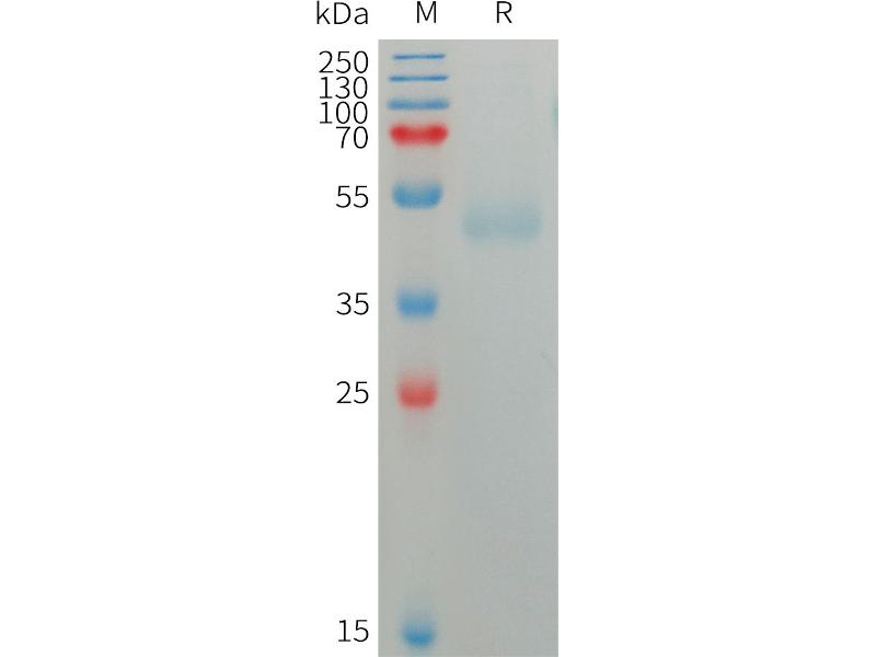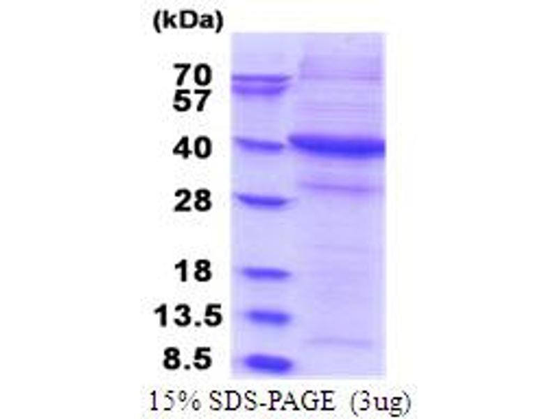 The purity of the protein is greater than 85 % as determined by SDS-PAGE and Coomassie blue staining.