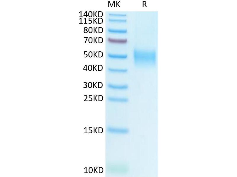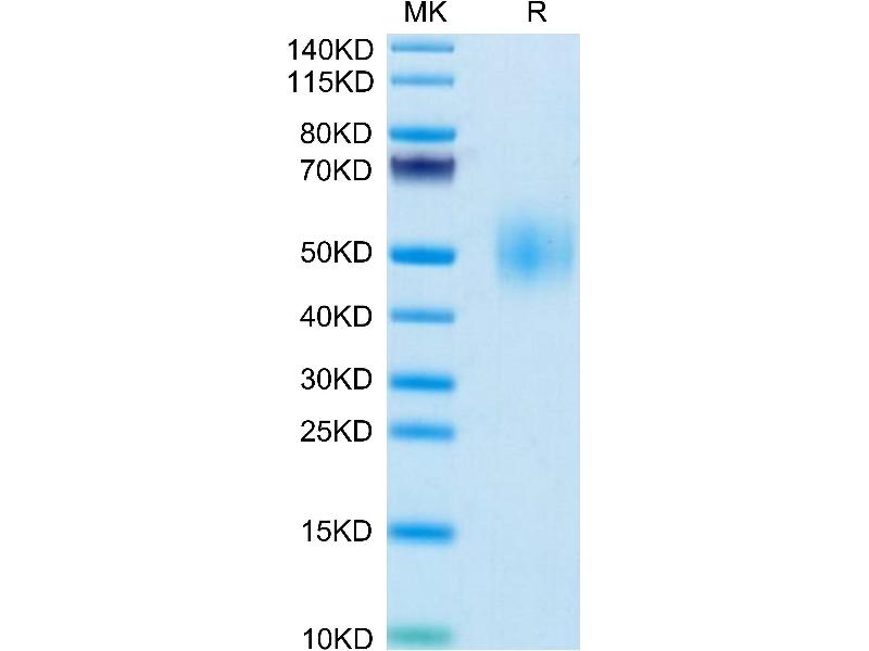 The purity of the protein is greater than 95 % as determined by SDS-PAGE and Coomassie blue staining.