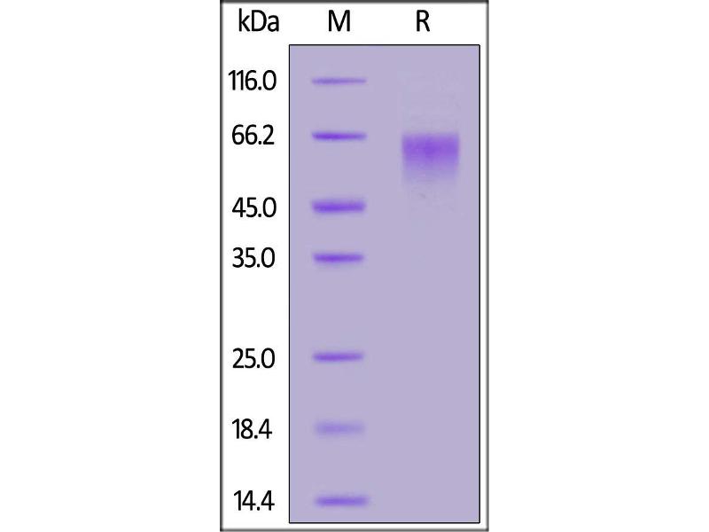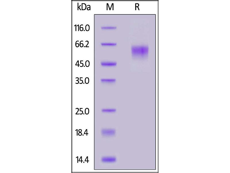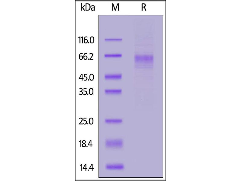 The purity of the protein is greater than 90 % as determined by SDS-PAGE and Coomassie blue staining.