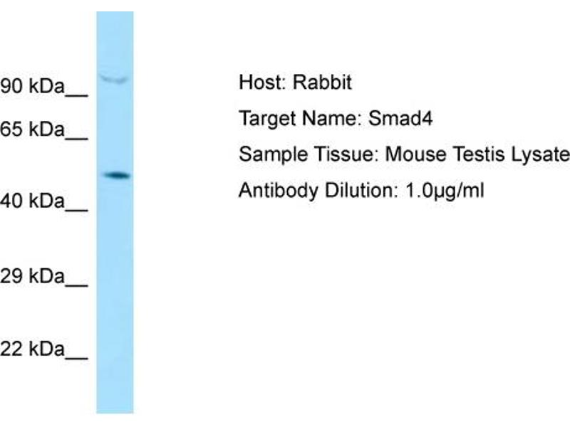 SMAD4 Reaktivität: Human, Maus, Ratte, Rind (Kuh), Zebrafisch (Danio rerio), Hund, Kaninchen, Ziege, Meerschweinchen, Pferd, Schaf WB Wirt: Kaninchen Polyclonal unconjugated