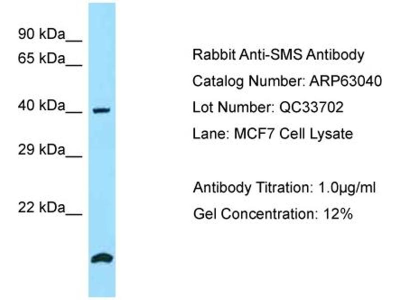 : "A Y328C missense mutation in spermine synthase causes a mild form of Snyder-Robinson syndrome." in: Human molecular genetics, Vol. 22, Issue 18, pp. 3789-97, (2013) (PubMed).Aliase für SMS Antikörper