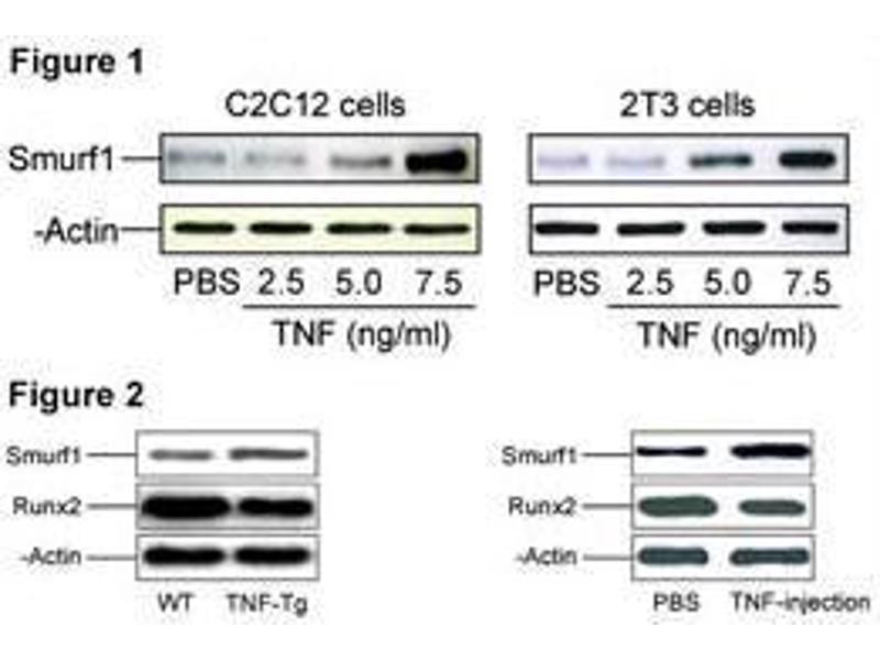 : "Tumor necrosis factor promotes Runx2 degradation through up-regulation of Smurf1 and Smurf2 in osteoblasts." in: The Journal of biological chemistry, Vol. 281, Issue 7, pp. 4326-33, (2006) (PubMed).