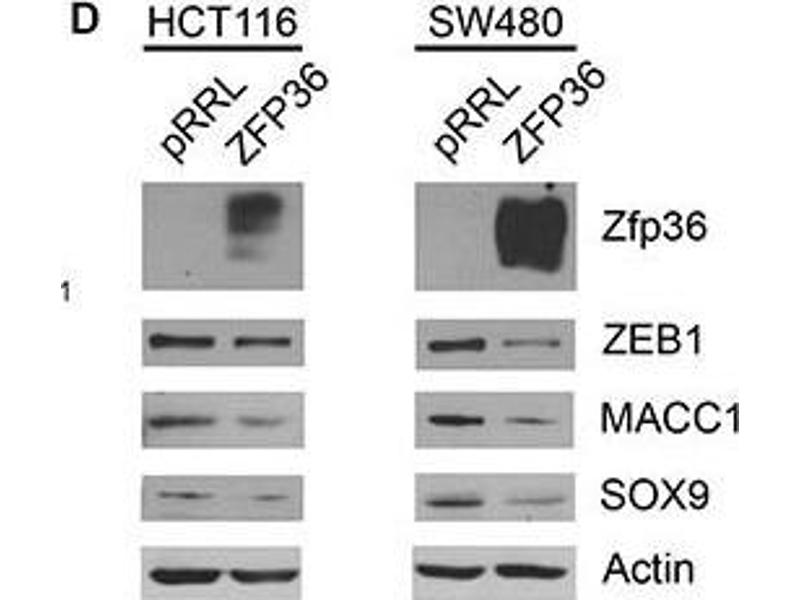 : "Loss of zfp36 expression in colorectal cancer correlates to wnt/ ß-catenin activity and enhances epithelial-to-mesenchymal transition through upregulation of zeb1, sox9 and macc1." in: Oncotarget, Vol. 7, Issue 37, pp. 59144-59157, (2016) (PubMed).