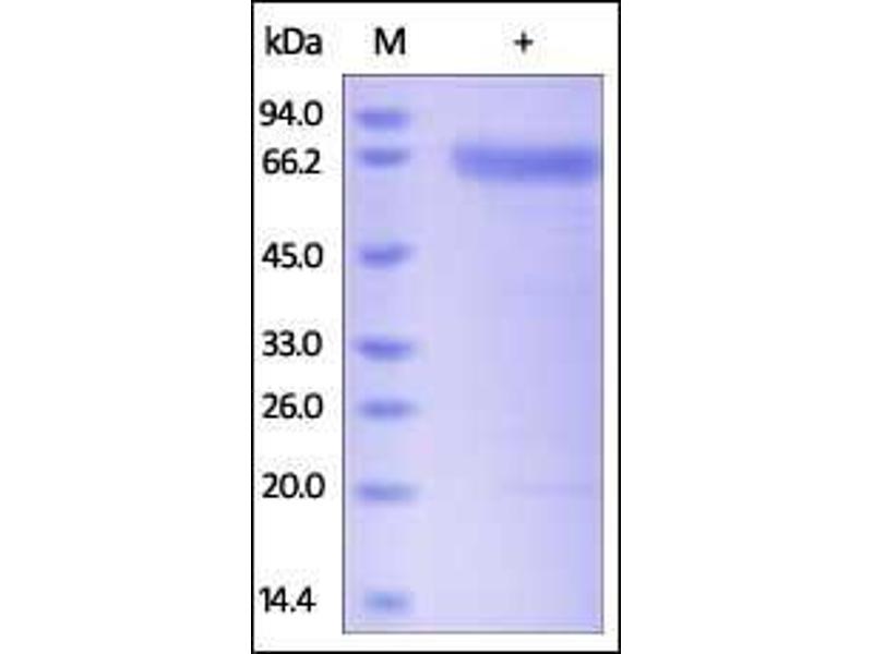 The purity of the protein is greater than 95 % as determined by SDS-PAGE and Coomassie blue staining.