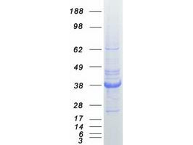 The purity of the protein is greater than 85 % as determined by SDS-PAGE and Coomassie blue staining.