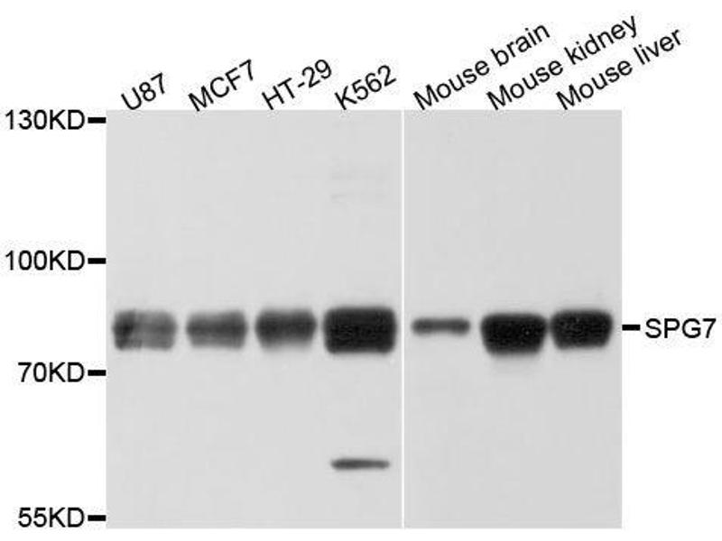 SPG7, paraplegin matrix AAA peptidase subunit (SPG7) AntikörperSPG7, paraplegin matrix AAA peptidase subunit (Spg7) Antikörper