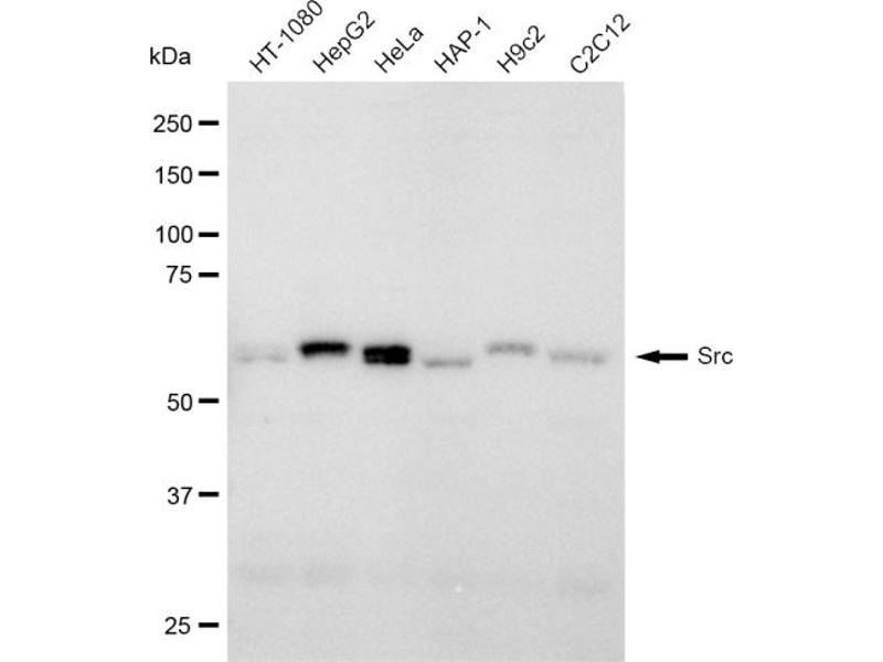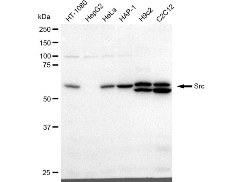 Src Reaktivität: Human, Maus, Ratte WB, ELISA, IHC (p), IF (cc), IF (p), IHC (fro) Wirt: Kaninchen Polyclonal unconjugated