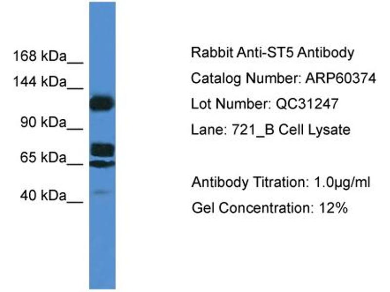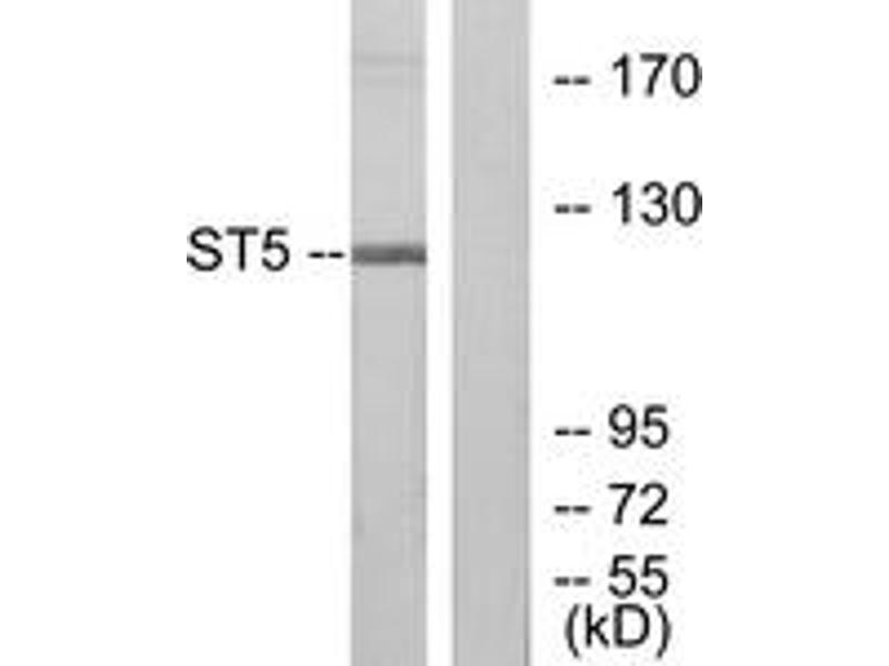 : "Deletion of the COOH terminus converts the ST5 p70 protein from an inhibitor of RAS signaling to an activator with transforming activity in NIH-3T3 cells." in: The Journal of biological chemistry, Vol. 275, Issue 9, pp. 6560-5, (2000) (PubMed).Aliase für ST5 Antikörper