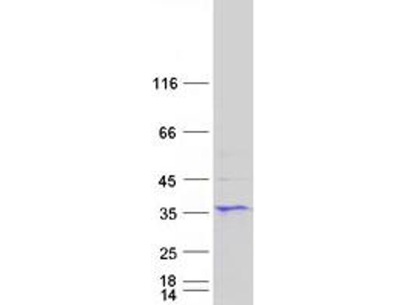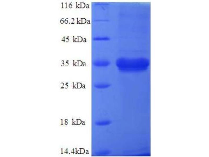 The purity of the protein is greater than 95 % as determined by SDS-PAGE and Coomassie blue staining.