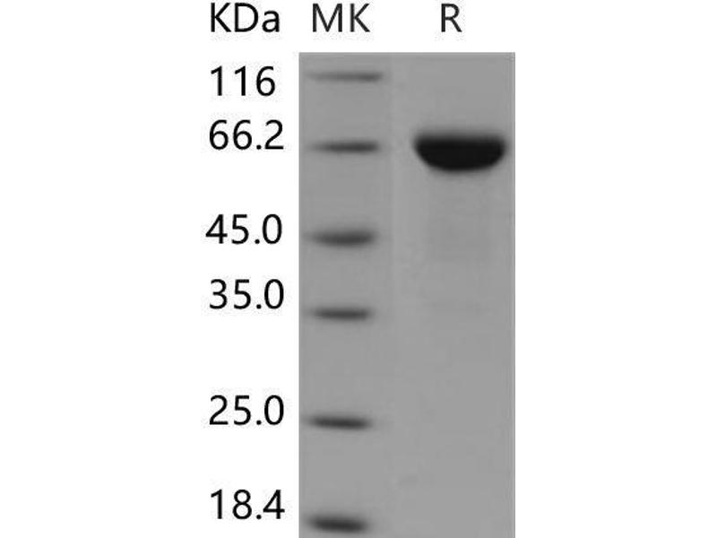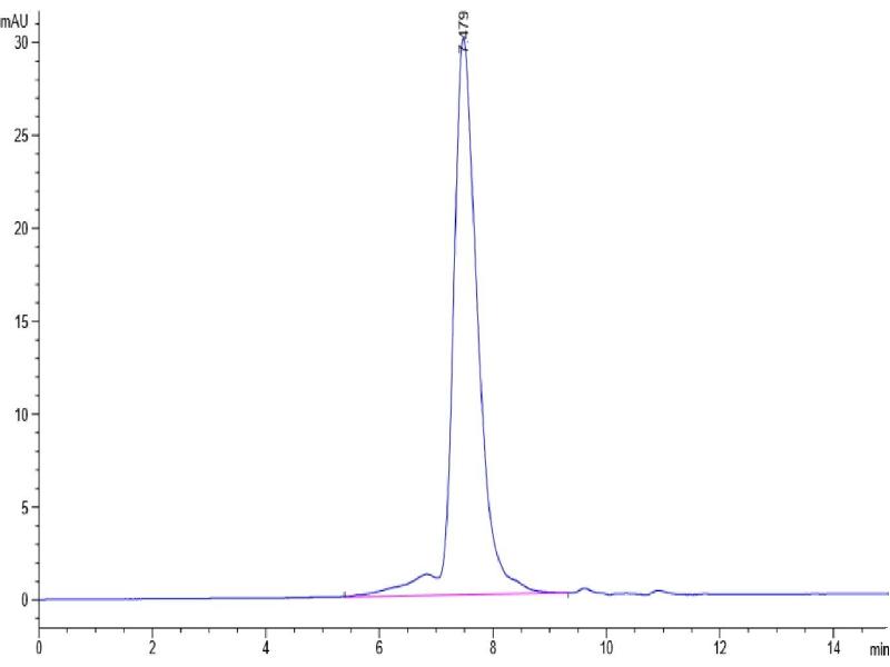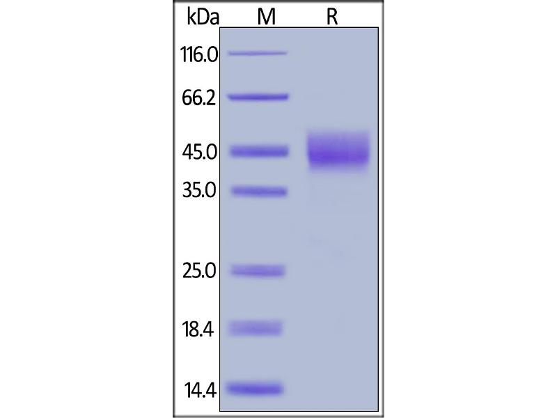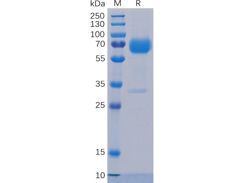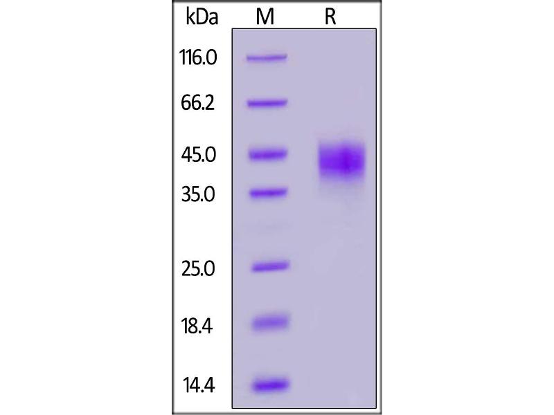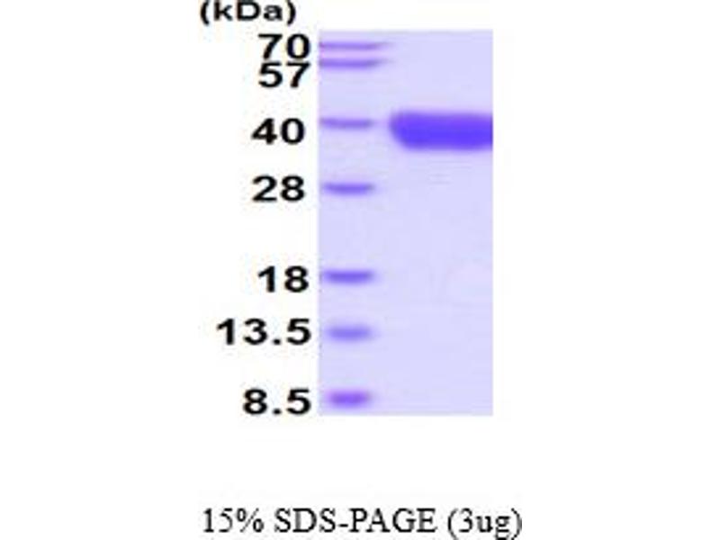 The purity of the protein is greater than 95 % as determined by SDS-PAGE and Coomassie blue staining.