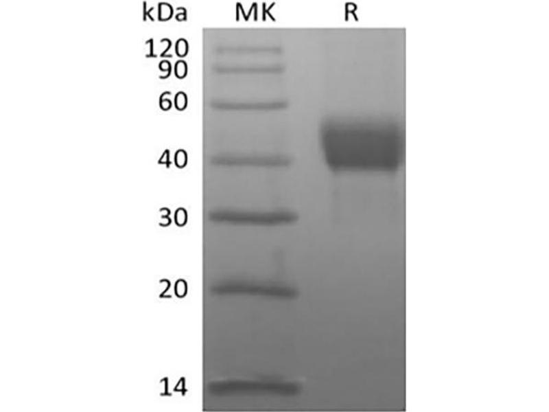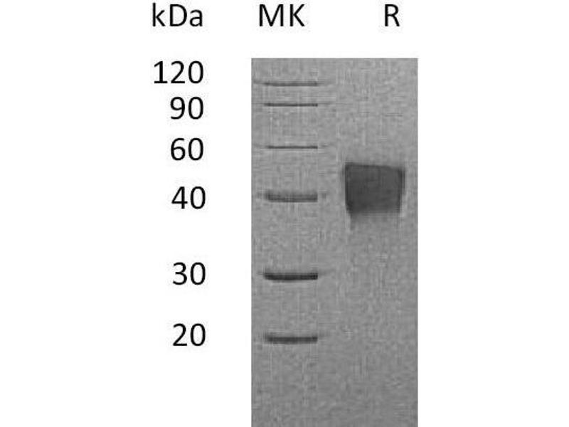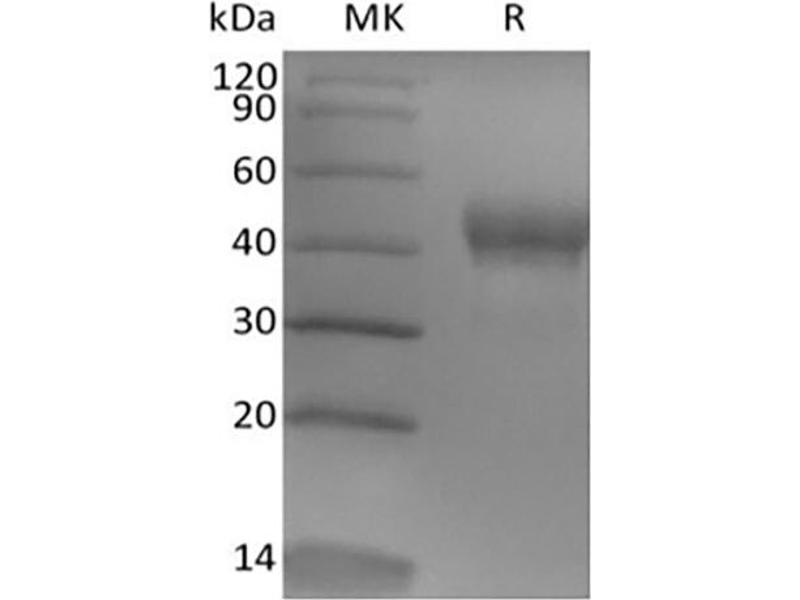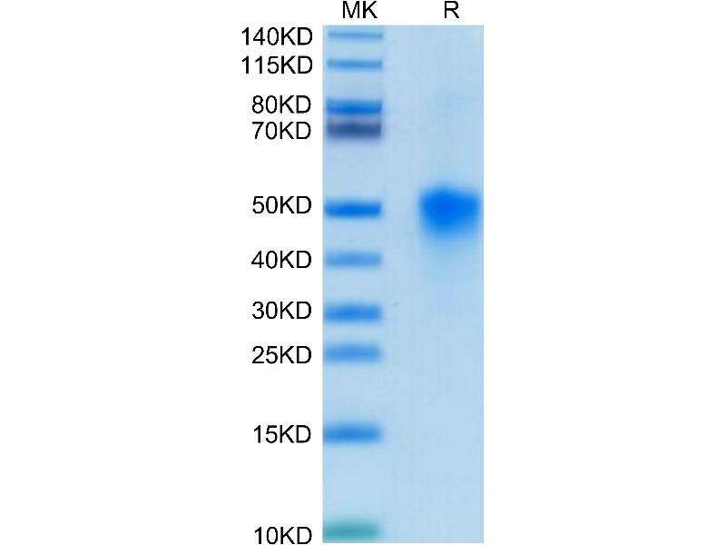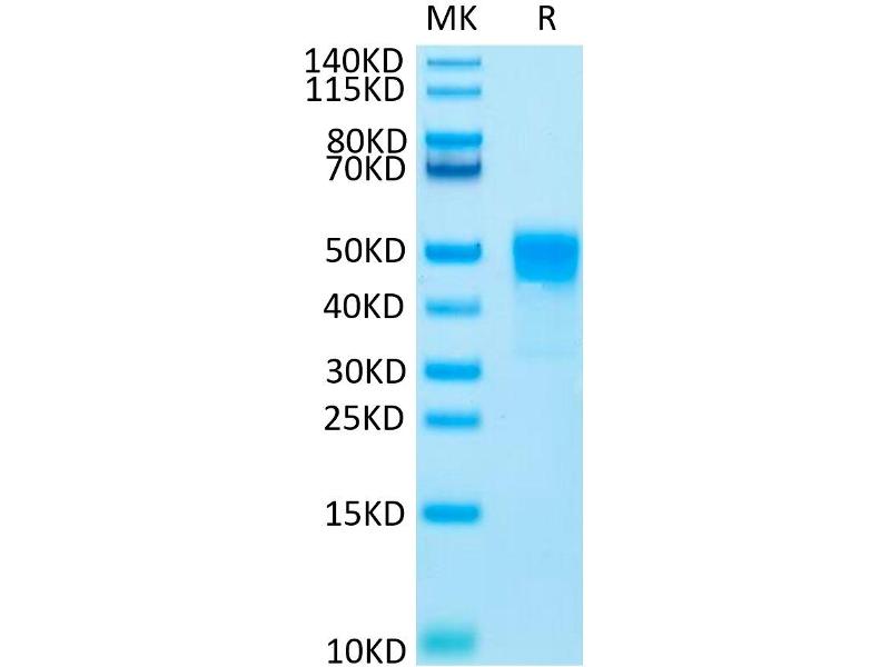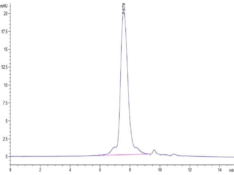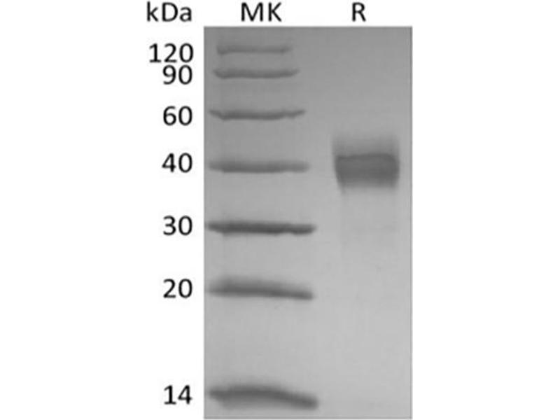 The purity of the protein is greater than 95 % as determined by SDS-PAGE and Coomassie blue staining.