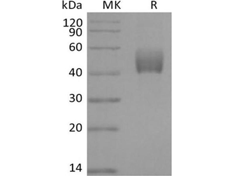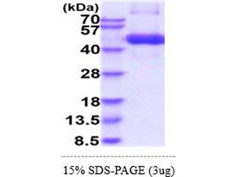 The purity of the protein is greater than 95 % as determined by SDS-PAGE and Coomassie blue staining.