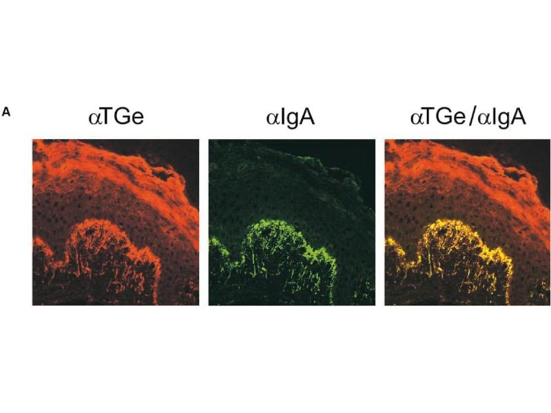 : "Identification of a preferred substrate peptide for transglutaminase 3 and detection of in situ activity in skin and hair follicles." in: The FEBS journal, Vol. 277, Issue 17, pp. 3564-74, (2010) (PubMed).