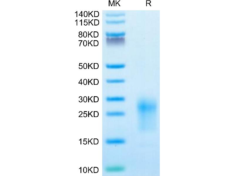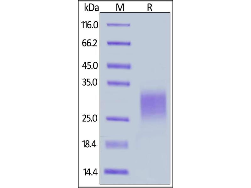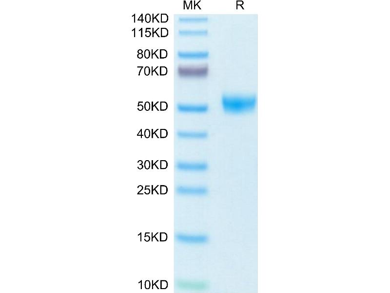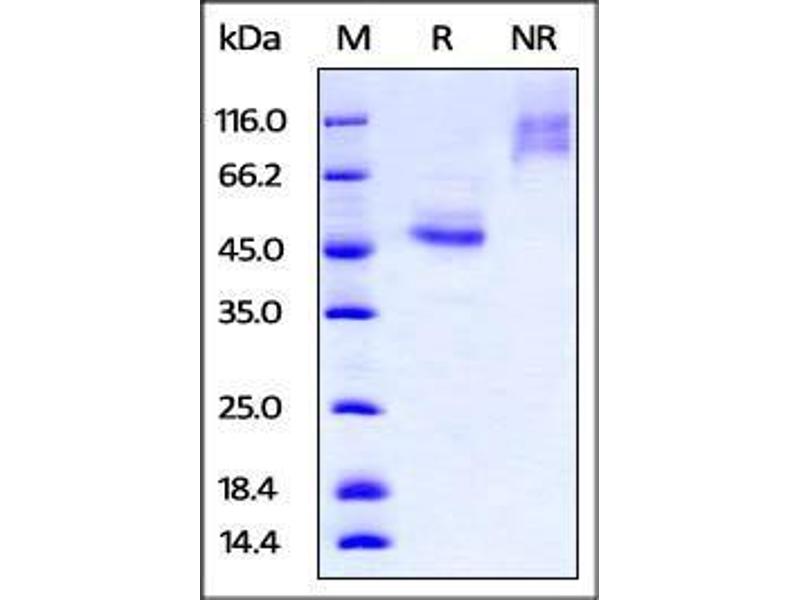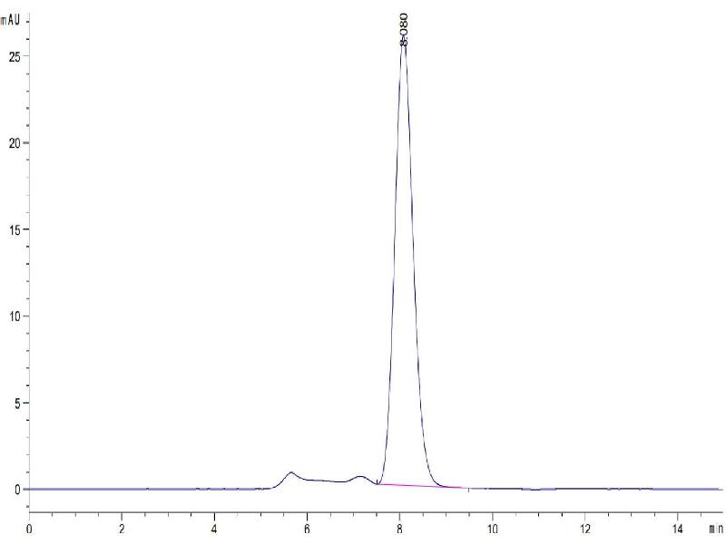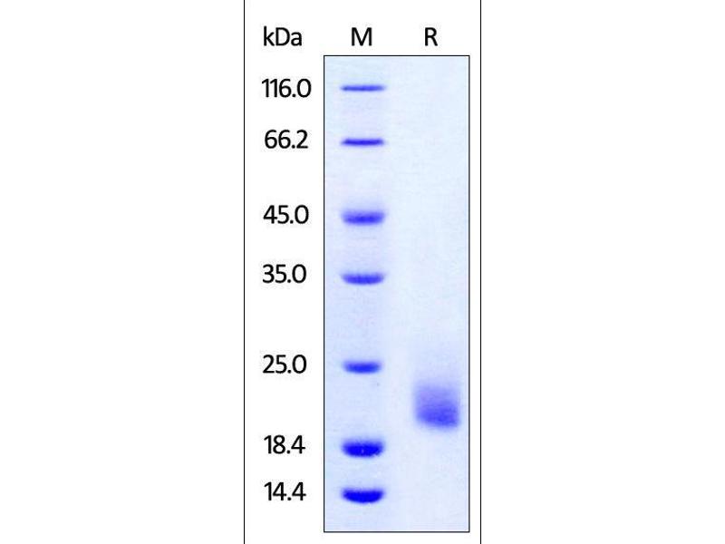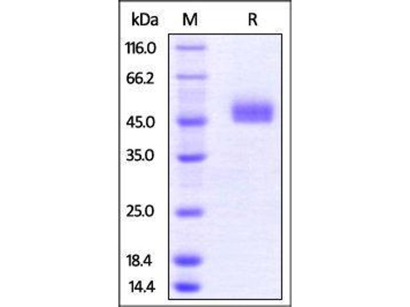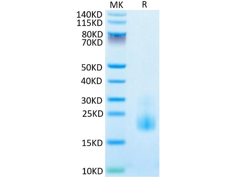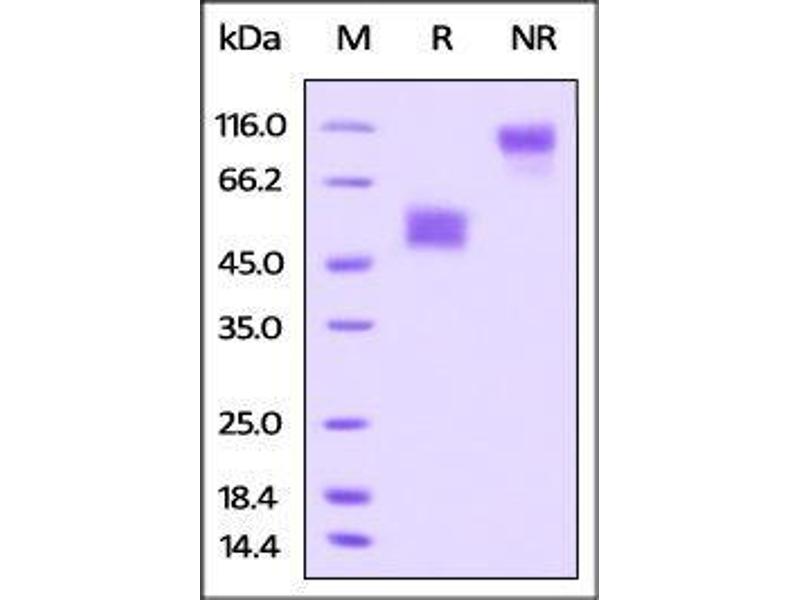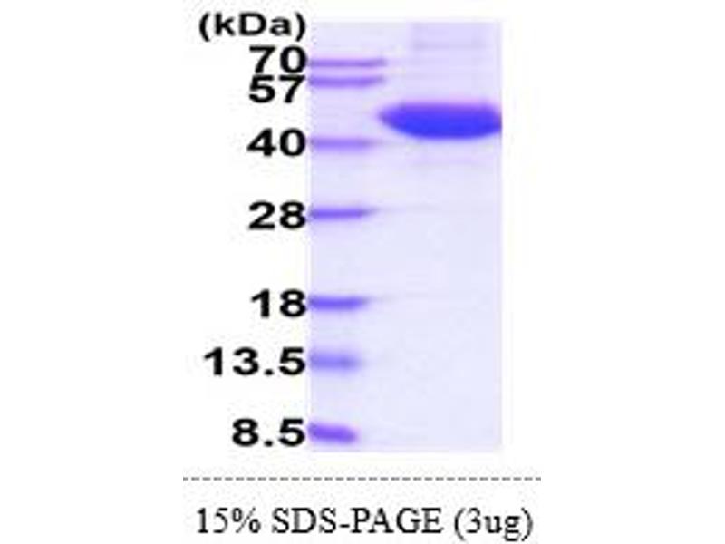 The purity of the protein is greater than 95 % as determined by SDS-PAGE and Coomassie blue staining.