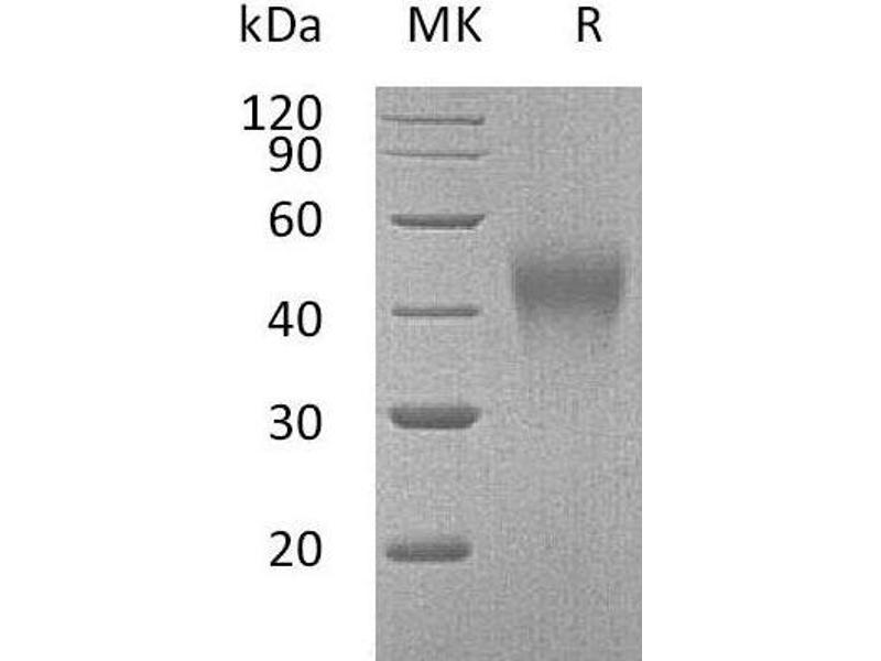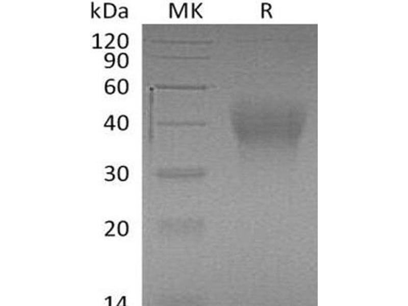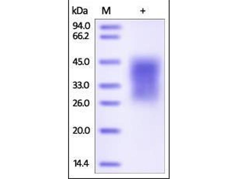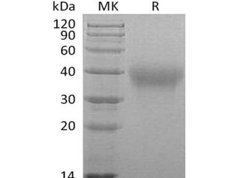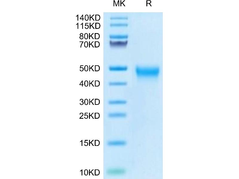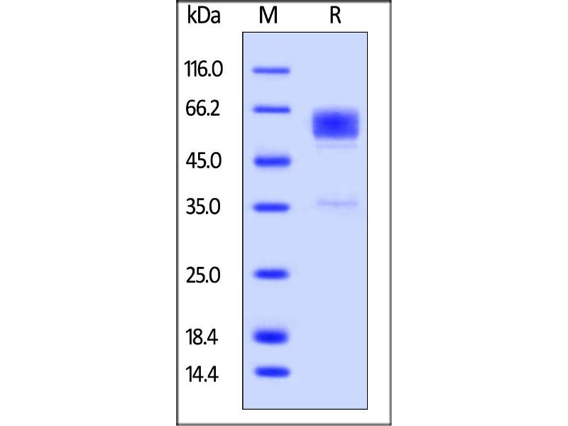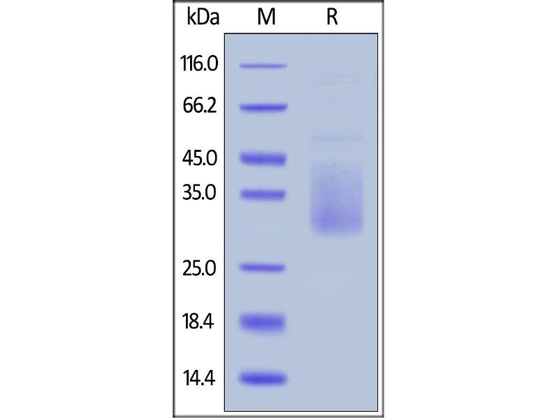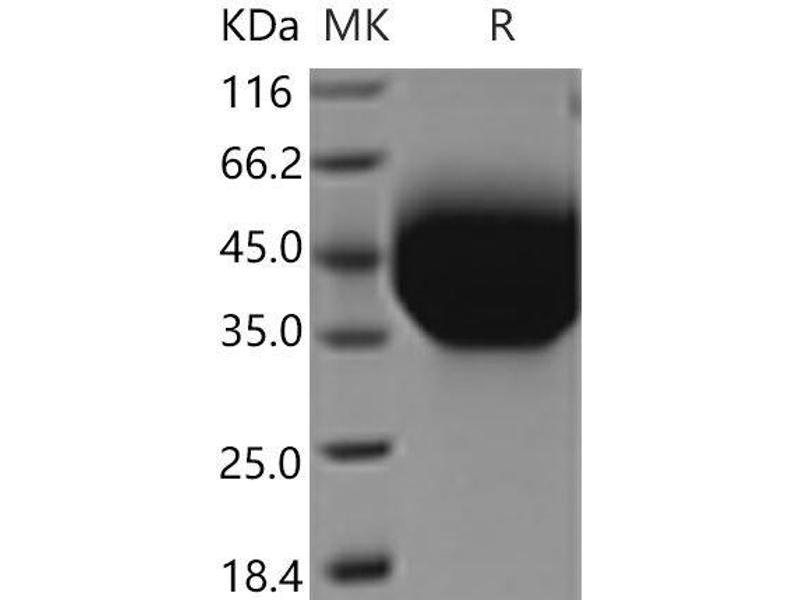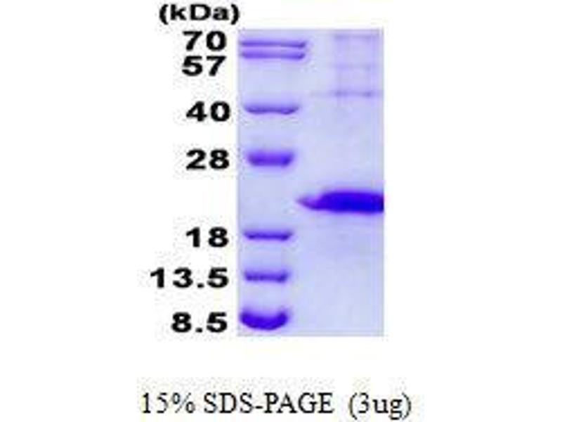 The purity of the protein is greater than 95 % as determined by SDS-PAGE and Coomassie blue staining.