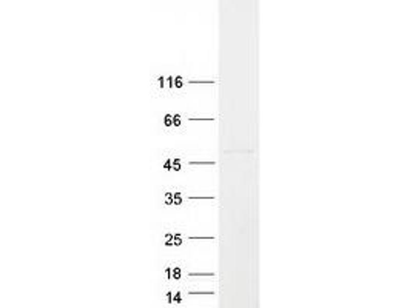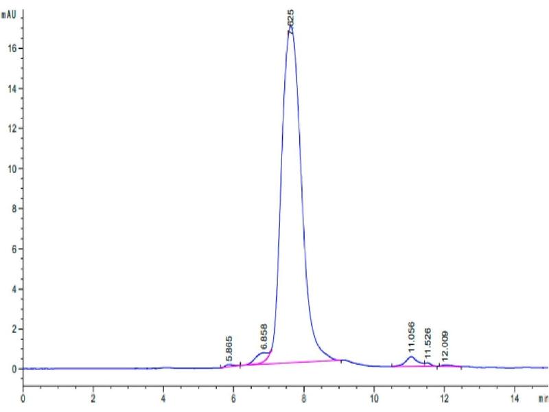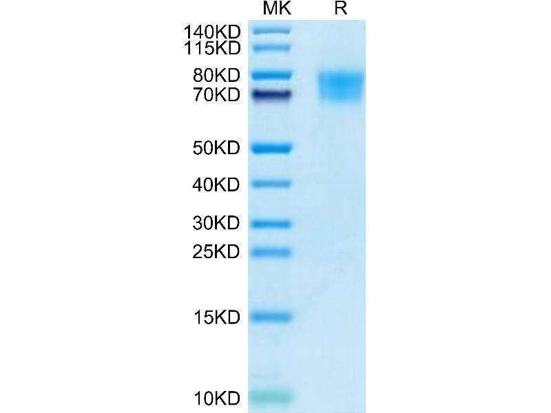 The purity of the protein is greater than 85 % as determined by SDS-PAGE and Coomassie blue staining.