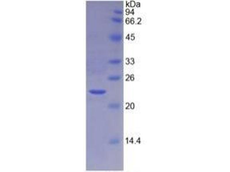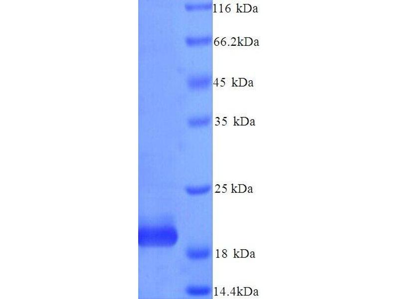 The purity of the protein is greater than 95 % as determined by SDS-PAGE and Coomassie blue staining.