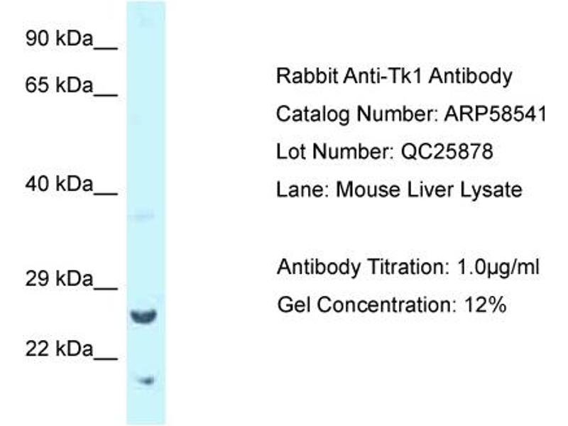 TK1 Reaktivität: Human, Maus, Ratte, Rind (Kuh), Hund, Meerschweinchen, Pferd, Kaninchen, Zebrafisch (Danio rerio) WB Wirt: Kaninchen Polyclonal unconjugated