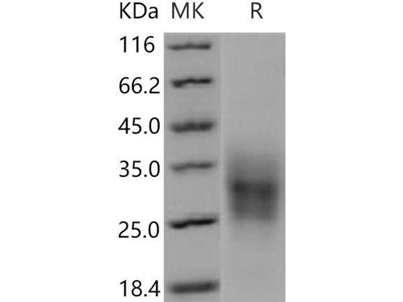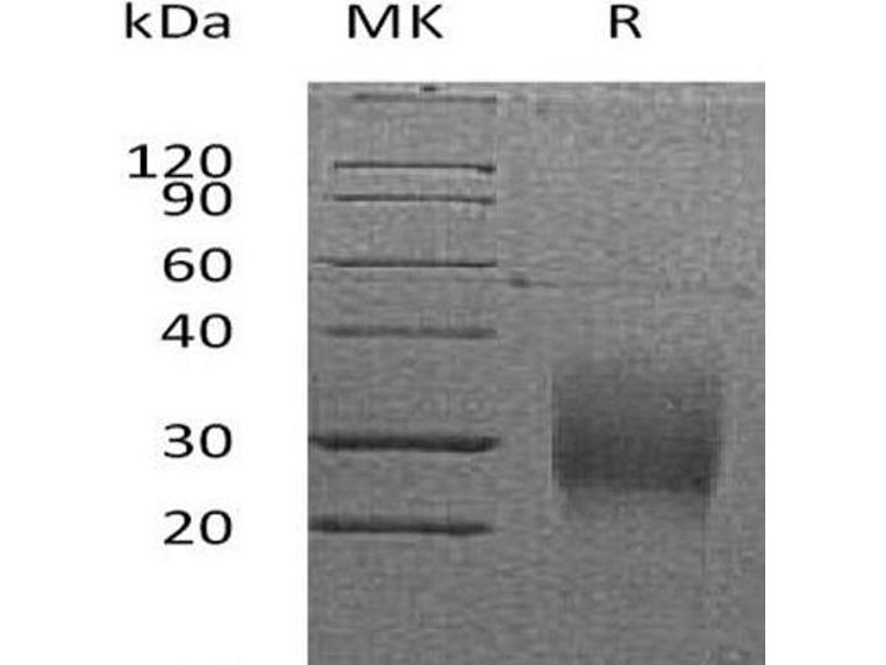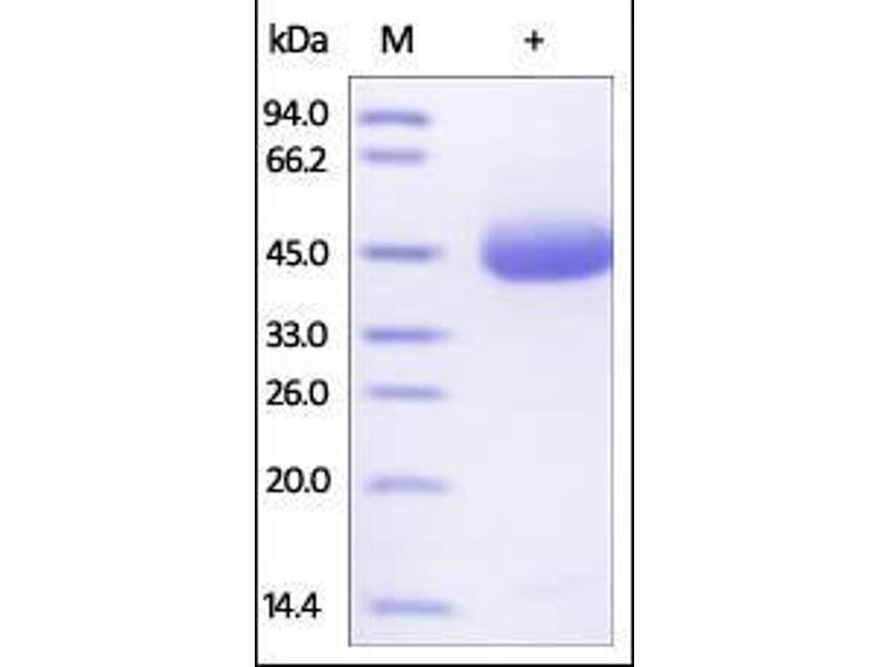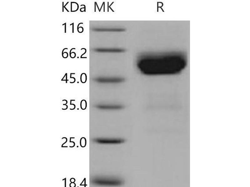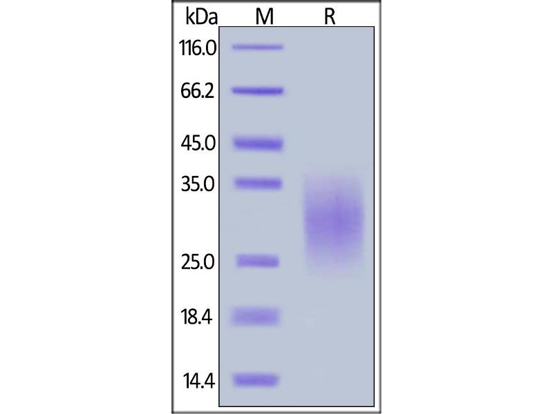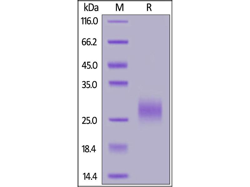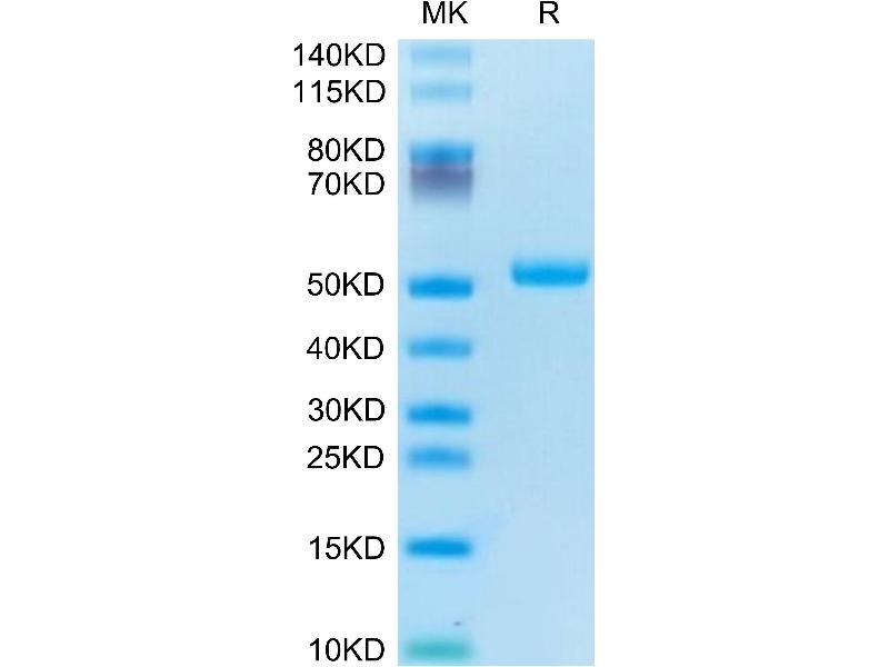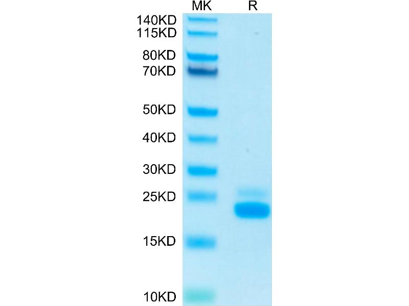 The purity of the protein is greater than 95 % as determined by SDS-PAGE and Coomassie blue staining.