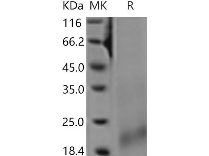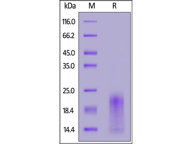 The purity of the protein is greater than 95 % as determined by SDS-PAGE and Coomassie blue staining.