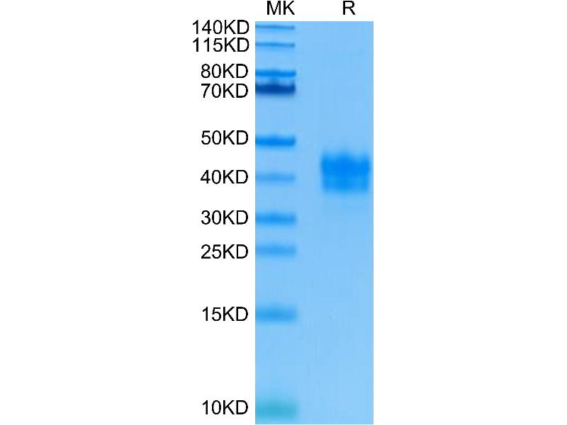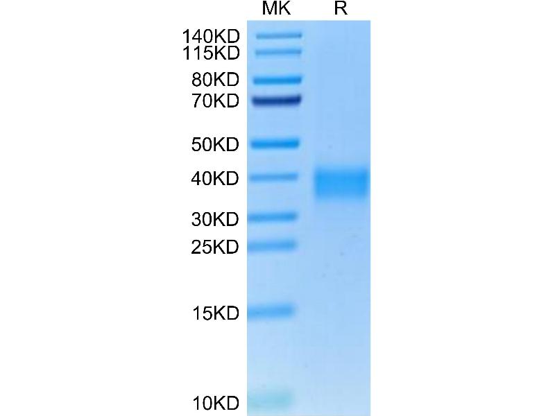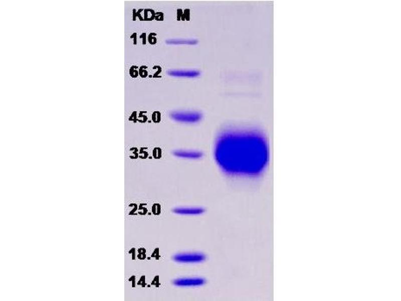 The purity of the protein is greater than 95 % as determined by SDS-PAGE and Coomassie blue staining.
