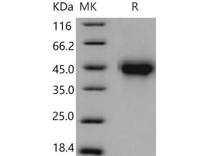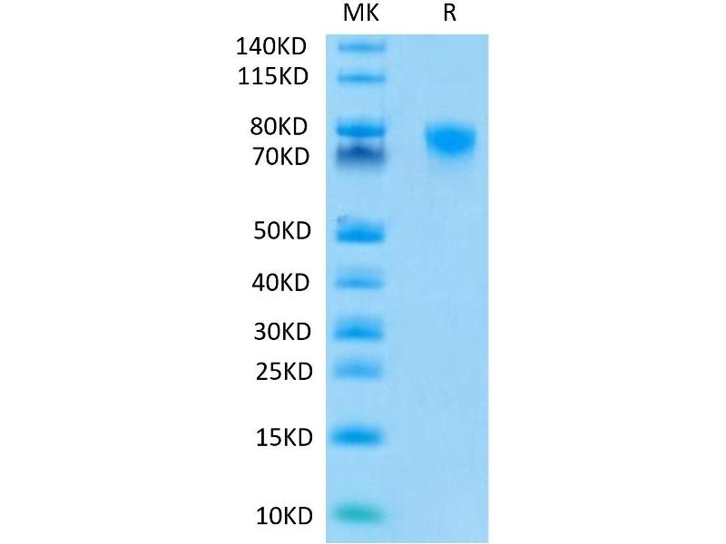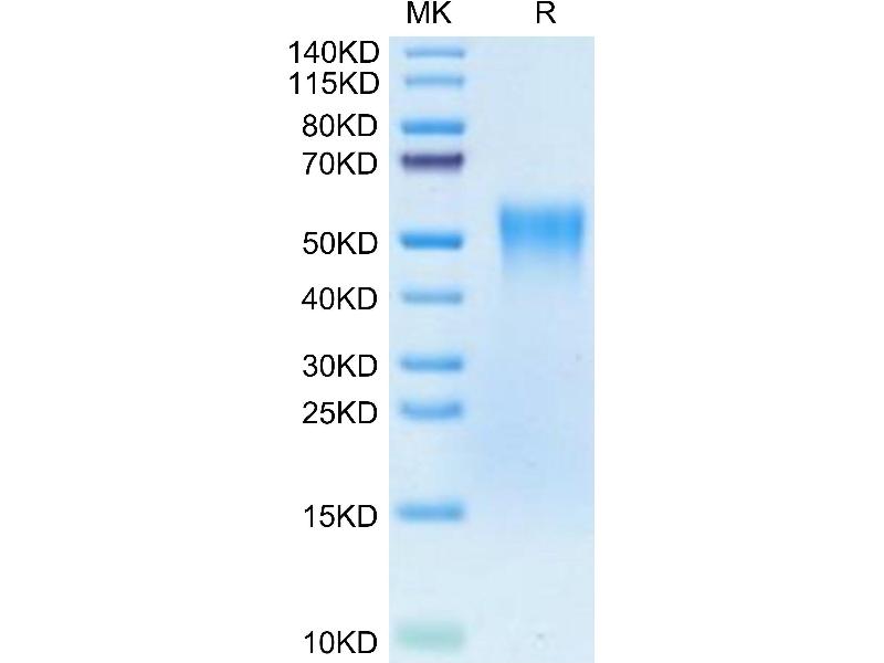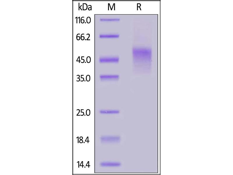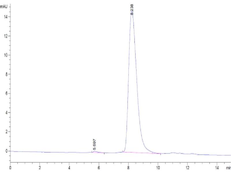The purity of the protein is greater than 95 % as determined by SDS-PAGE and Coomassie blue staining.