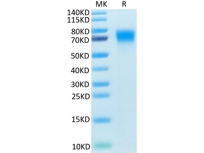 The purity of the protein is greater than 85 % as determined by SDS-PAGE and Coomassie blue staining.