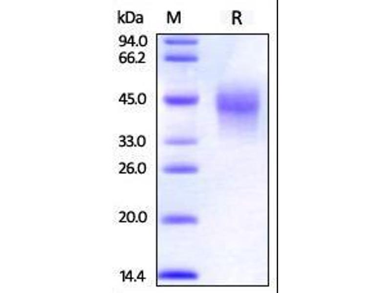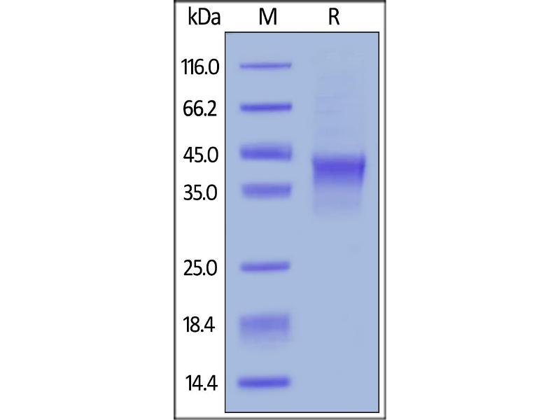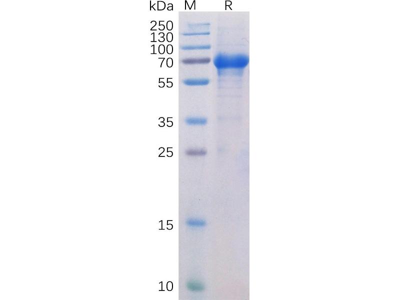 The purity of the protein is greater than 95 % as determined by SDS-PAGE and Coomassie blue staining.