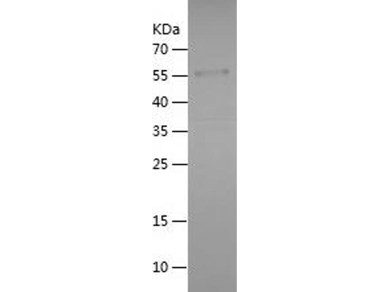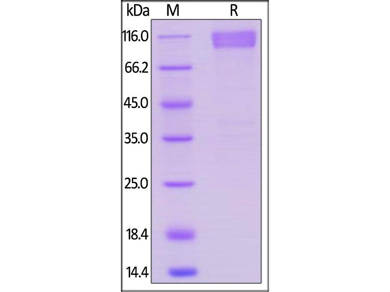 The purity of the protein is greater than 95 % as determined by SDS-PAGE and Coomassie blue staining.