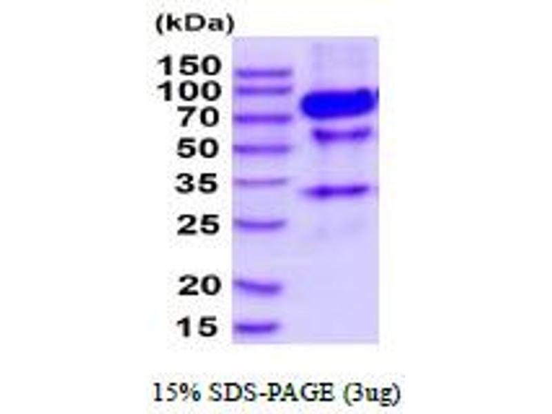 The purity of the protein is greater than 85 % as determined by SDS-PAGE and Coomassie blue staining.
