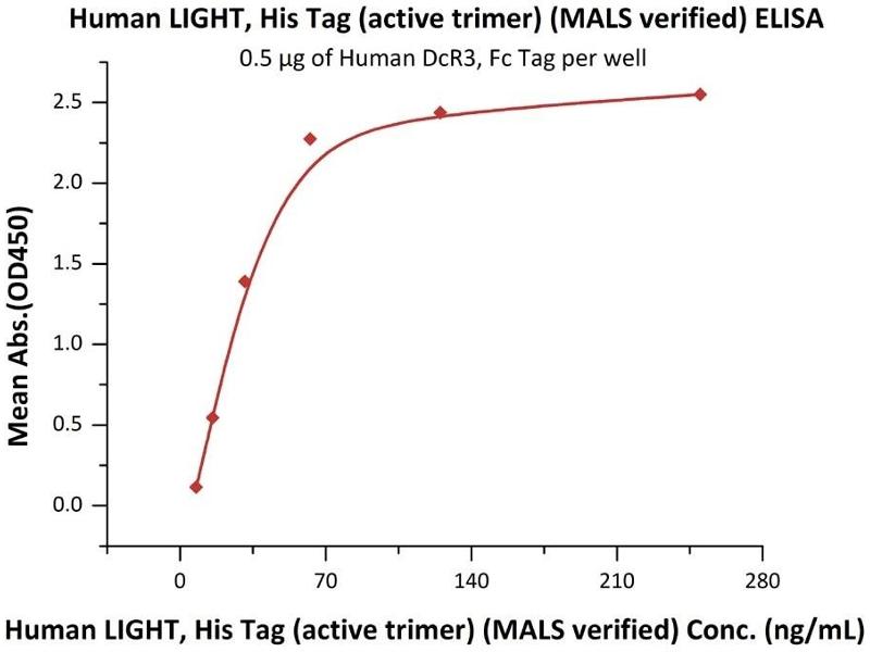 The protein encoded by this gene is a member of the tumor necrosis factor (TNF) ligand family. This protein is a ligand for TNFRSF14, which is a member of the tumor necrosis factor receptor superfamily, and which is also known as a herpesvirus entry mediator (HVEM). This protein may function as a costimulatory factor for the activation of lymphoid cells and as a deterrent to infection by herpesvirus. This protein has been shown to stimulate the proliferation of T cells, and trigger apoptosis of various tumor cells. This protein is also reported to prevent tumor necrosis factor alpha mediated apoptosis in primary hepatocyte. Two alternatively spliced transcript variant encoding distinct isoforms have been reported. [provided by RefSeq, Jul 2008].