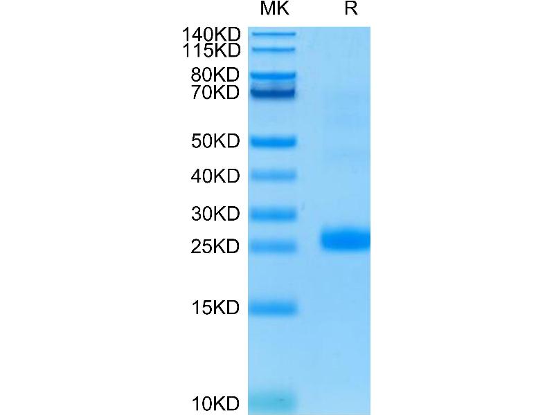 The purity of the protein is greater than 95 % as determined by SDS-PAGE and Coomassie blue staining.