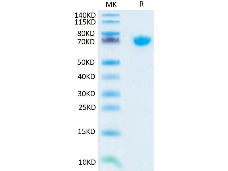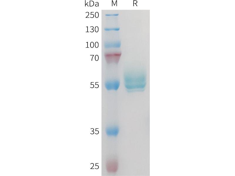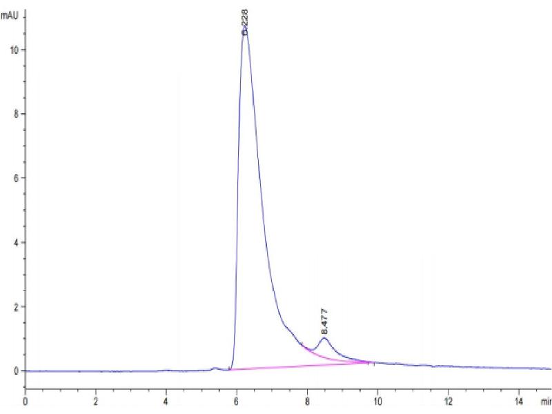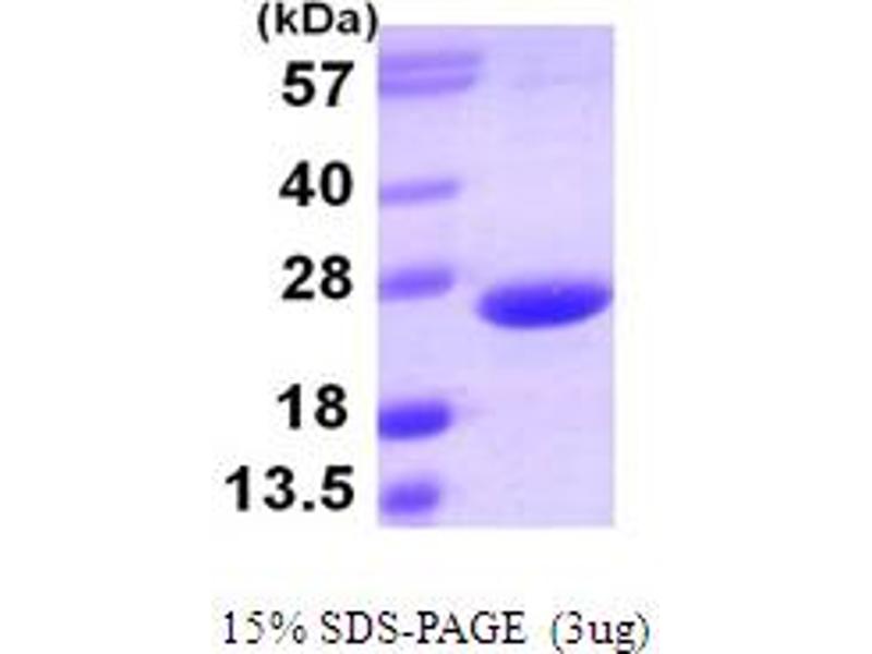 The purity of the protein is greater than 95 % as determined by SDS-PAGE and Coomassie blue staining.