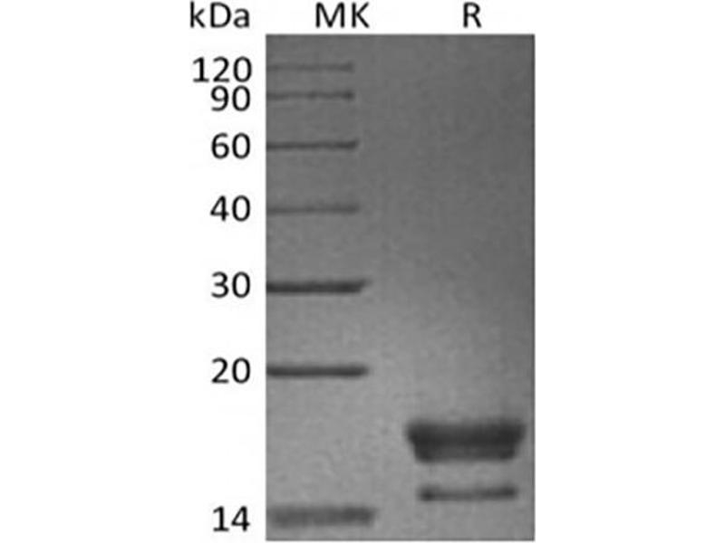 The purity of the protein is greater than 95 % as determined by SDS-PAGE and Coomassie blue staining.