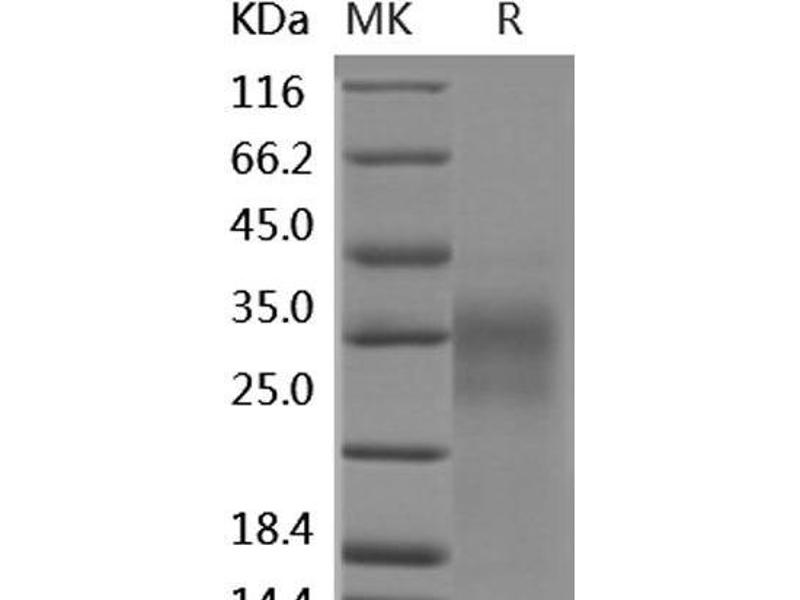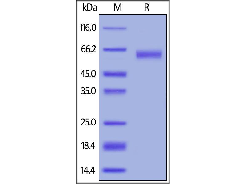 The purity of the protein is greater than 95 % as determined by SDS-PAGE and Coomassie blue staining.