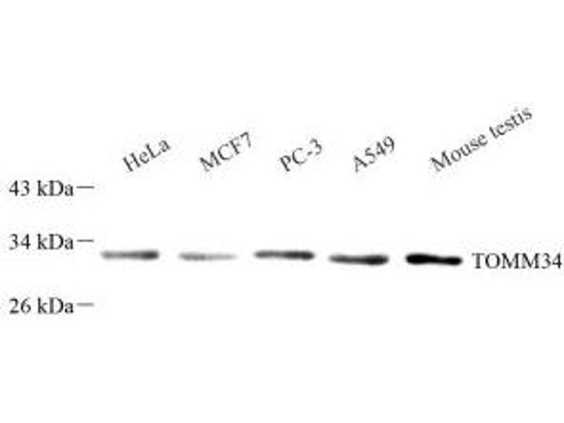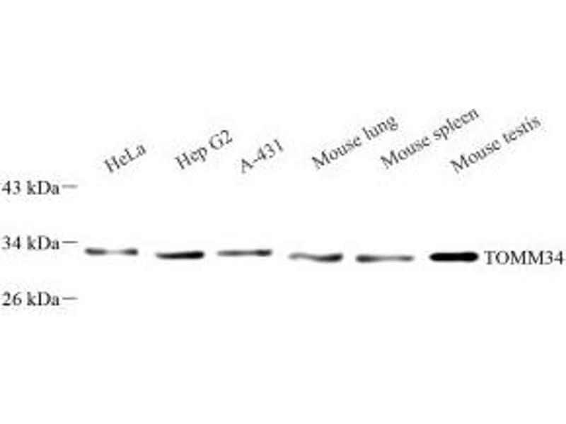 translocase of outer mitochondrial membrane 34 (TOMM34) Antikörpertranslocase of outer mitochondrial membrane 34 (Tomm34) Antikörper