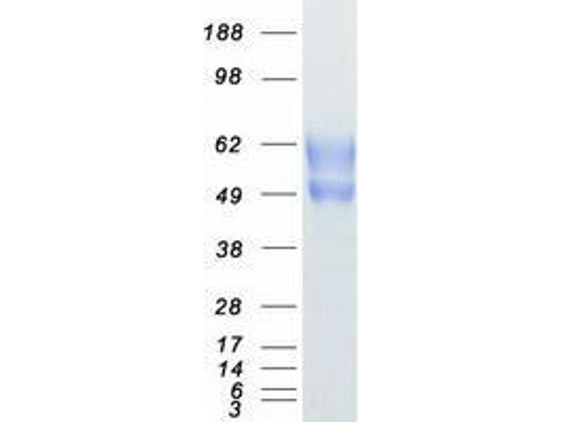 The purity of the protein is greater than 95 % as determined by SDS-PAGE and Coomassie blue staining.