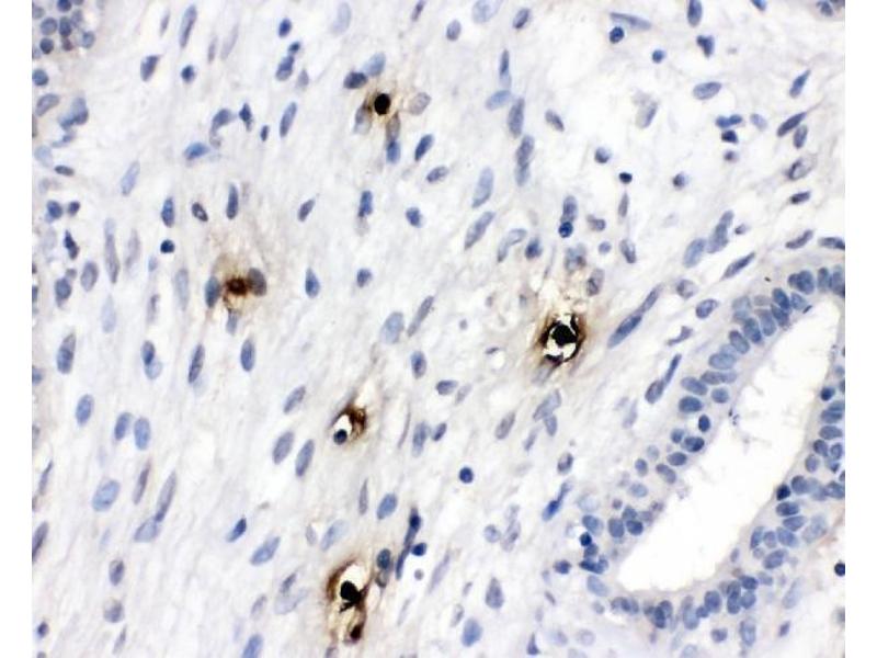 : "Immunohistochemical identification of mast cells in formaldehyde-fixed tissue using monoclonal antibodies specific for tryptase." in: The Journal of pathology, Vol. 162, Issue 2, pp. 119-26, (1991) (PubMed).