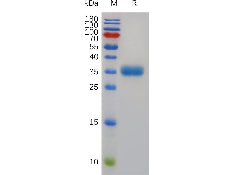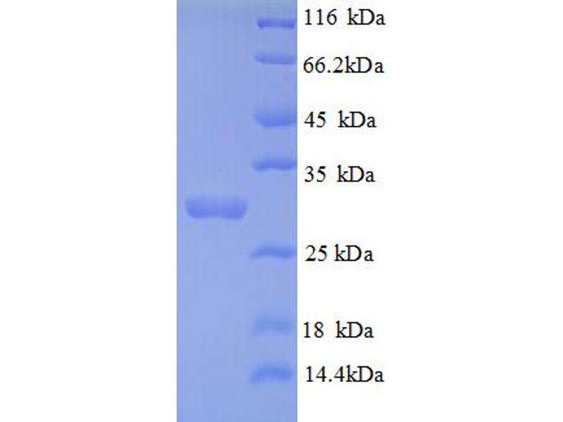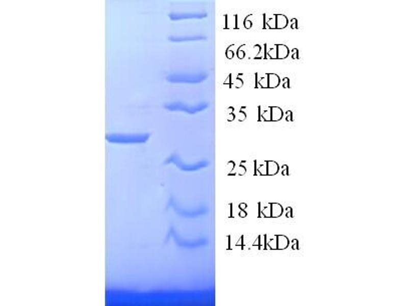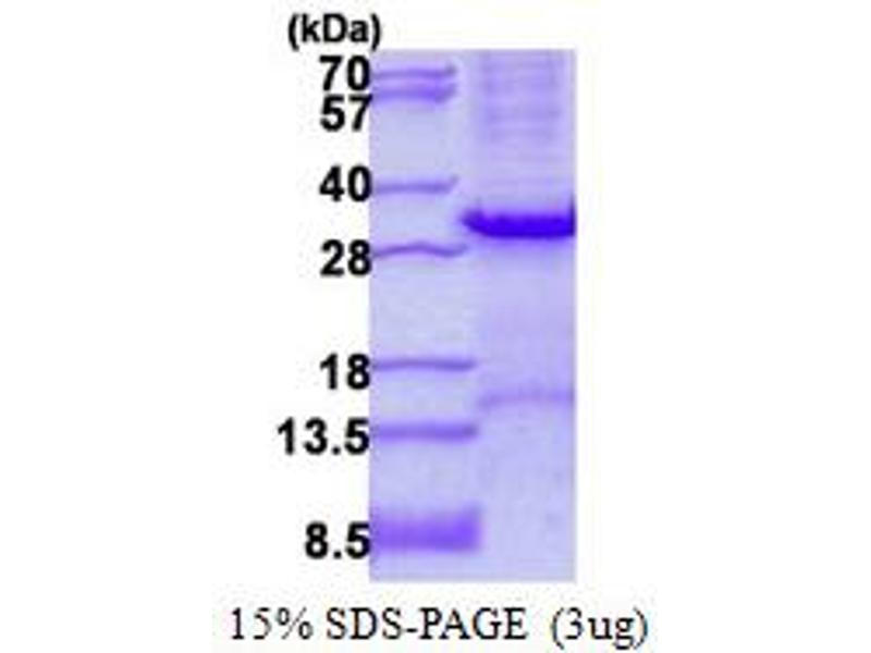 The purity of the protein is greater than 85 % as determined by SDS-PAGE and Coomassie blue staining.