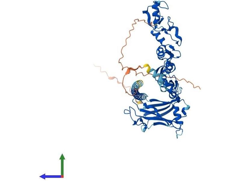 The protein encoded by this gene is a member of the TNF receptor associated factor (TRAF) protein family. TRAF proteins are associated with, and mediate signal transduction from, members of the TNF receptor superfamily. This protein mediates signaling from members of the TNF receptor superfamily as well as the Toll/IL-1 family. Signals from receptors such as CD40, TNFSF11/RANCE and IL-1 have been shown to be mediated by this protein. This protein also interacts with various protein kinases including IRAK1/IRAK, SRC and PKCzeta, which provides a link between distinct signaling pathways. This protein functions as a signal transducer in the NF-kappaB pathway that activates IkappaB kinase (IKK) in response to proinflammatory cytokines. The interaction of this protein with UBE2N/UBC13, and UBE2V1/UEV1A, which are ubiquitin conjugating enzymes catalyzing the formation of polyubiquitin chains, has been found to be required for IKK activation by this protein. This protein also interacts with the transforming growth factor (TGF) beta receptor complex and is required for Smad-independent activation of the JNK and p38 kinases. This protein has an amino terminal RING domain which is followed by four zinc-finger motifs, a central coiled-coil region and a highly conserved carboxyl terminal domain, known as the TRAF-C domain. Two alternatively spliced transcript variants, encoding an identical protein, have been reported. [provided by RefSeq, Feb 2012].