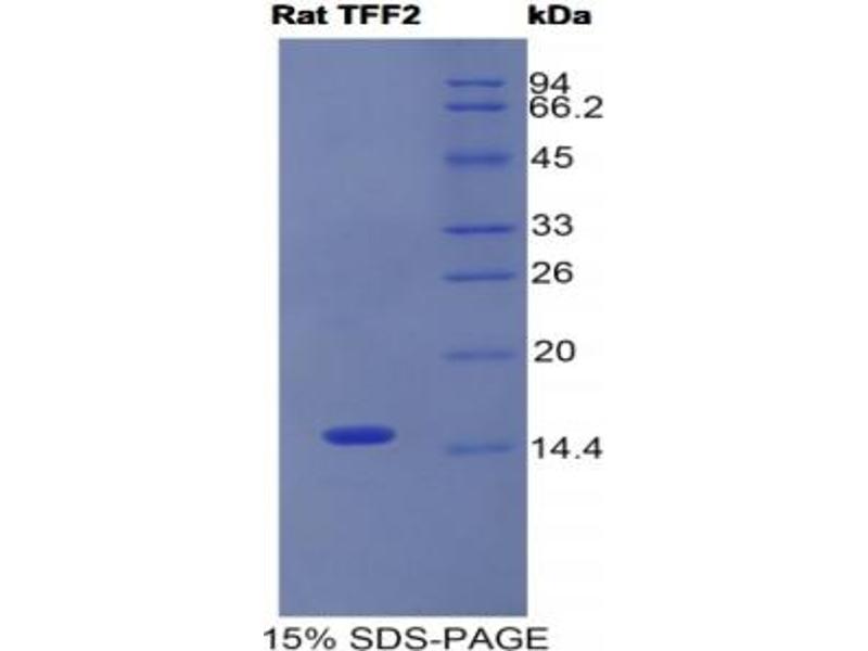 Members of the trefoil family are characterized by having at least one copy of the trefoil motif, a 40-amino acid domain that contains three conserved disulfides. They are stable secretory proteins expressed in gastrointestinal mucosa. Their functions are not defined, but they may protect the mucosa from insults, stabilize the mucus layer and affect healing of the epithelium. The encoded protein inhibits gastric acid secretion. This gene and two other related trefoil family member genes are found in a cluster on chromosome 21. [provided by RefSeq, Jul 2008].