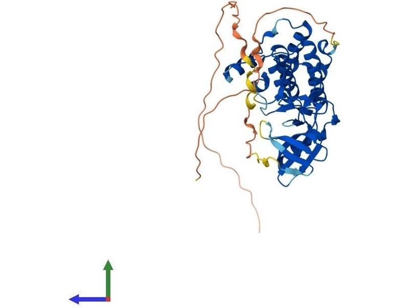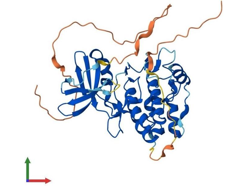 The protein encoded by this gene is a putative protein kinase that is induced by the transcription factor NF-kappaB. The encoded protein is a negative regulator of NF-kappaB and can also sensitize cells to TNF- and TRAIL-induced apoptosis. In addition, this protein can negatively regulate the cell survival serine-threonine kinase AKT1. [provided by RefSeq, Jul 2008].