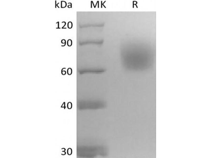 The purity of the protein is greater than 85 % as determined by SDS-PAGE and Coomassie blue staining.