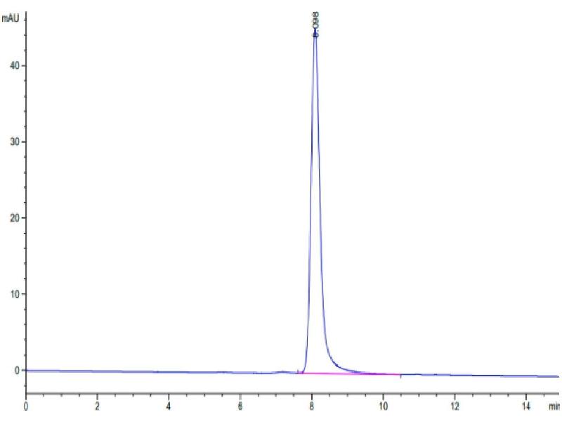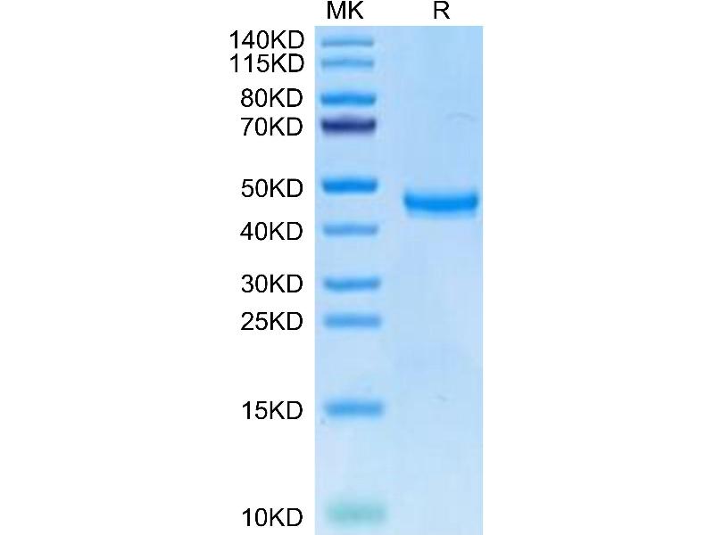 The purity of the protein is greater than 95 % as determined by SDS-PAGE and Coomassie blue staining.
