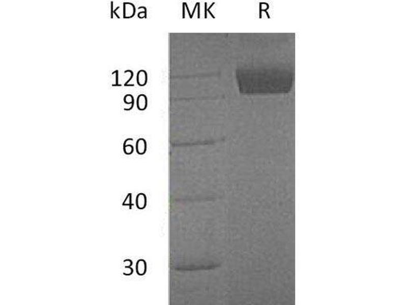 The purity of the protein is greater than 95 % as determined by SDS-PAGE and Coomassie blue staining.