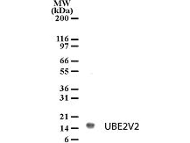 : "Molecular cloning of a 1alpha,25-dihydroxyvitamin D3-inducible transcript (DDVit 1) in human blood monocytes." in: Biochemical and biophysical research communications, Vol. 235, Issue 2, pp. 407-12, (1997) (PubMed).Aliase für UBE2V2 Antikörper