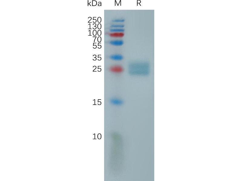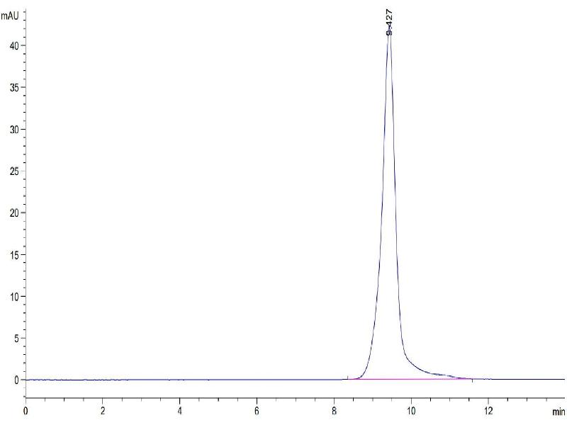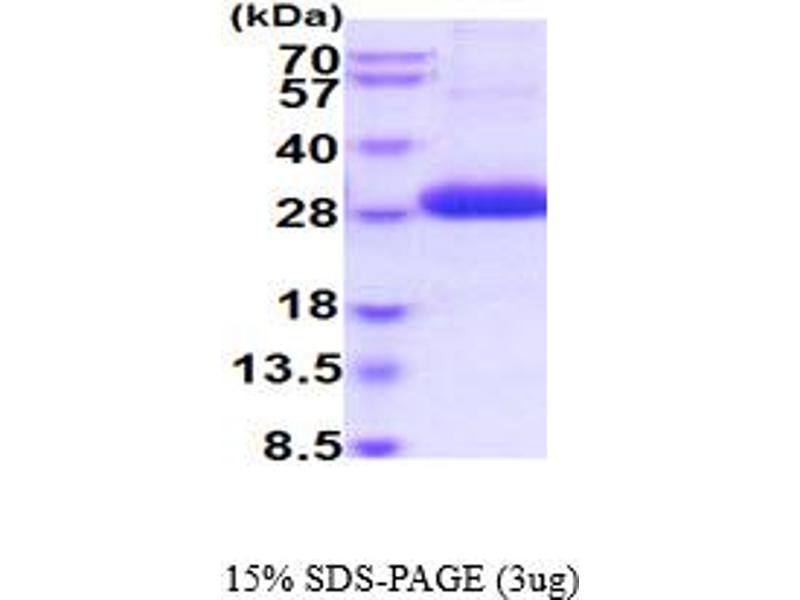 The purity of the protein is greater than 85 % as determined by SDS-PAGE and Coomassie blue staining.