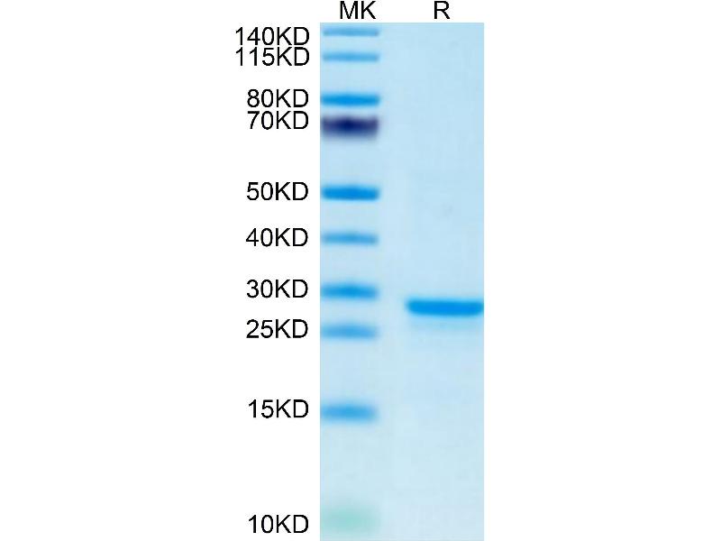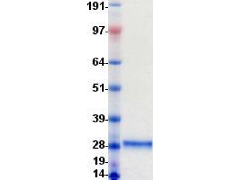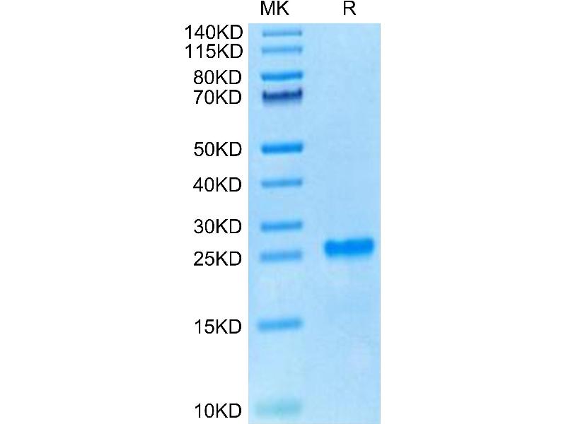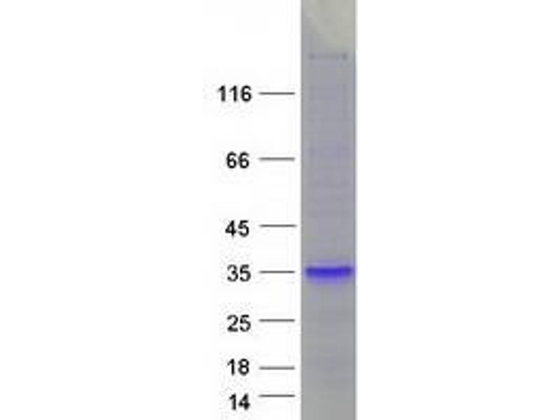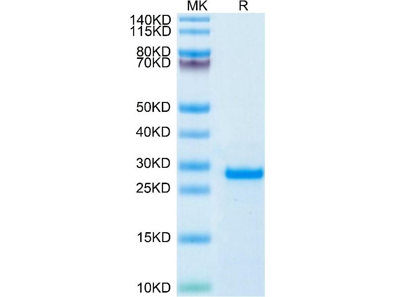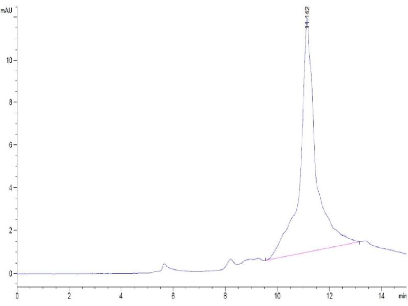 The purity of the protein is greater than 95 % as determined by SDS-PAGE and Coomassie blue staining.