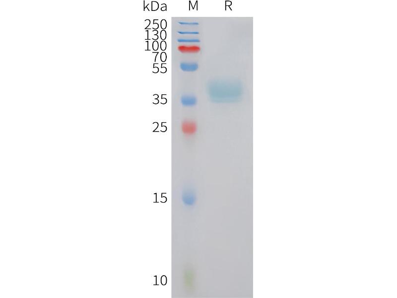 The purity of the protein is greater than 95 % as determined by SDS-PAGE and Coomassie blue staining.