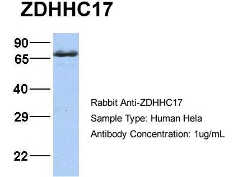 : "Huntingtin-interacting protein HIP14 is a palmitoyl transferase involved in palmitoylation and trafficking of multiple neuronal proteins." in: Neuron, Vol. 44, Issue 6, pp. 977-86, (2004) (PubMed).Aliase für ZDHHC17 Antikörper